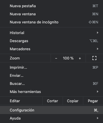 Haz clic en la sección «Configuración» pulsando en el menú ⋮ situado en la esquina superior derecha de la ventana.