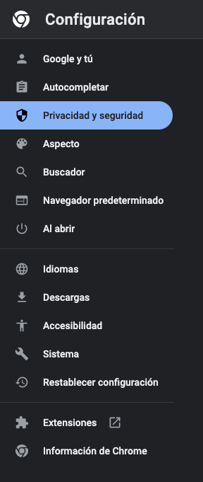 En esta nueva ventana, haz clic en «Privacidad y seguridad» en el sidebar de la izquierda: