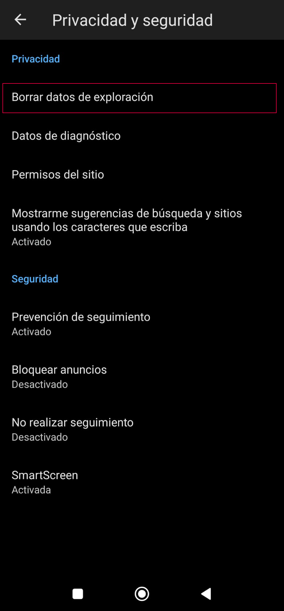Cómo eliminar las cookies en Microsoft Edge en móvil