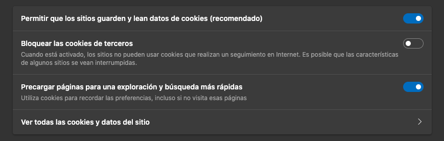 Pero existe mucha gente que esto último, lo de recabar información del usuario, no le acaba de gustar ya que sienten que las webs están violando su privacidad. Por suerte, muchos navegadores como Microsoft Edge, cuentan con opciones para deshabilitarlas.